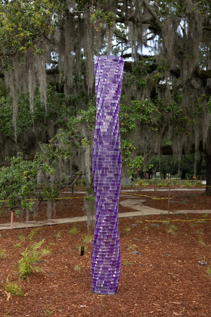 The renowned landscape architectural firm of Reed Hilderbrand, based in Cambridge, Massachusetts, paid particular attention to maintaining City Park’s distinct riparian terrain in the garden’s design. The expansion incorporates vegetation indigenous to south Louisiana, including existing live oaks, along with new plantings of palmetto, ginger, sweetbay magnolia, bald cypress, Louisiana iris, and swamp lily. Works are arranged in the open lawn, under tree canopies, across open water, on cypress islands, and within understory planting, all connected by pedestrian bridges designed to complement the grounds.