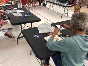 The following day, May 29th, Art Thrives had a small gathering with participants and some friends to celebrate the completion of the workshop. We celebrated while eating flatbreads and salads catered by Café NOMA. Toasting lemonades while listening to some upbeat jazz, we all sat and talked about the work we created as well as other art that has inspired us to create. When asked of their experience within the Art Thrives workshop, one participant said, “Please continue this program. It’s lots of fun as well as educational and instructive.” Another participant pointed out that there aren’t many in person workshops or classes where you learn things like sewing, and her experience trying to find a program like Art Thrives where she can learn crafts has been difficult as most programs are now online. She enjoyed learning the cultural aspects of beading in New Orleans. She said, “It’s important for people to talk to each other, get tips, and have people to ask questions.” This was a successful workshop and showcase, and I hope to see even more people joining us in the future.