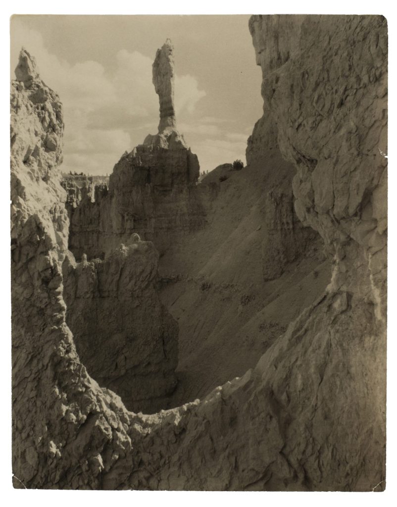 The View From Here includes work by artists internationally synonymous with the landscape genre, like Laura Gilpin and Lilian De Cocke Morgan, as well as regionally significant figures like Stephanie Dinkins and Suzanne Camp Crosby. For Marion Post Wolcott and Berenice Abbott, better known for their documentation of the built environment, the photographs included here demonstrate their versatility with the camera. Imogen Cunningham and Ellen Land-Weber push the generic boundaries of a “landscape” by incorporating pictorialist techniques and surrealist themes, while contemporary artists Dionne Lee and Sally Mann use the landscape to explore ideas of identity and history by including themselves and their family members in the photograph.