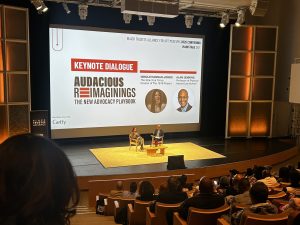 For Wilson-Harris, her choice to join the BTA “[stemmed] from a desire to connect with fellow Black museum trustees…[and discuss] shared challenges, learn about best practices, and identify critical pathways for the advancement of art institutions.” This summer, her drive to develop critical connections and conversations led her to BTA’s Annual Convening, hosted May 1-3, 2025, in Los Angeles, California. Centered on the theme “Audacious Reimaginings: The New Advocacy Playbook,” this invitation-only summit featured a keynote conversation between The 1619 Project founder Nikole Hannah-Jones and The Opportunity Agenda co-founder Alan Jenkins, which Wilson-Harris attended. Questions driving the keynote conversation included “What will it take to move from presence to power in museum boardrooms–individually and collectively?” During the annual convening, Wilson-Harris also connected with fellow BTA members representing arts institutions across North America.