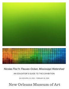 This free, downloadable Educator’s Guide to the exhibition Nicolas Floc’h: Fleuves-Océan, Mississippi Watershed features resources that can be used during visits to the exhibition, itself, as well as in post-visit lessons and activities in the K-12 classroom. Featured classroom activities and reflective questions ask students to consider the role of the Mississippi River in their own lives, while additional resource lists (including books, websites, and films) help students expand their understanding of this body of water, its surrounding landscapes, histories, and cultures.